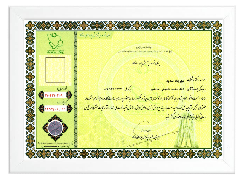 تعالی: با ممارست و تلاش مستمر برآموزش و بروز نمودن خود اصرار داریم و تمام تلاش خود را خواهیم نمود تا در تمامی حوزه ها اعم از نوآوری، تكنولوژی، کیفیت، خدمات و قیمت برترین و بهترین باشیم و همواره رو به جلو و بهبود مستمر گام برداریم.