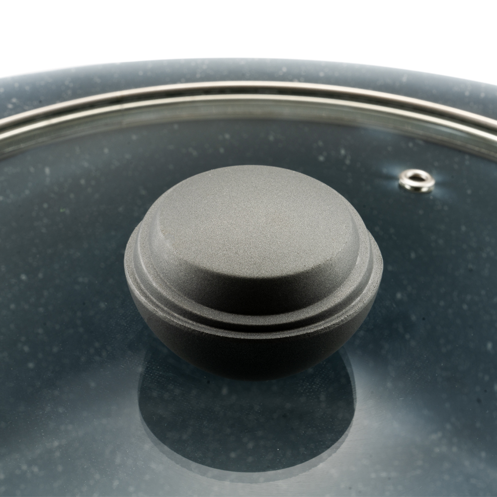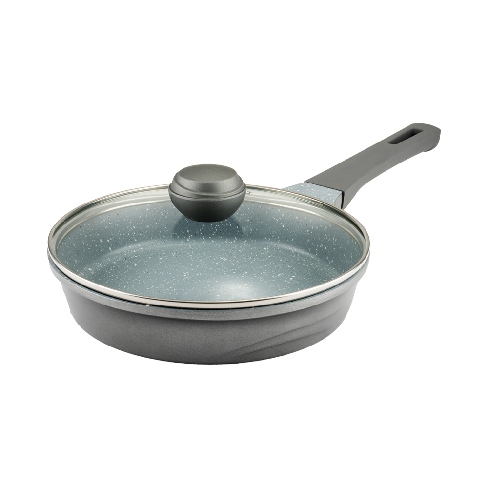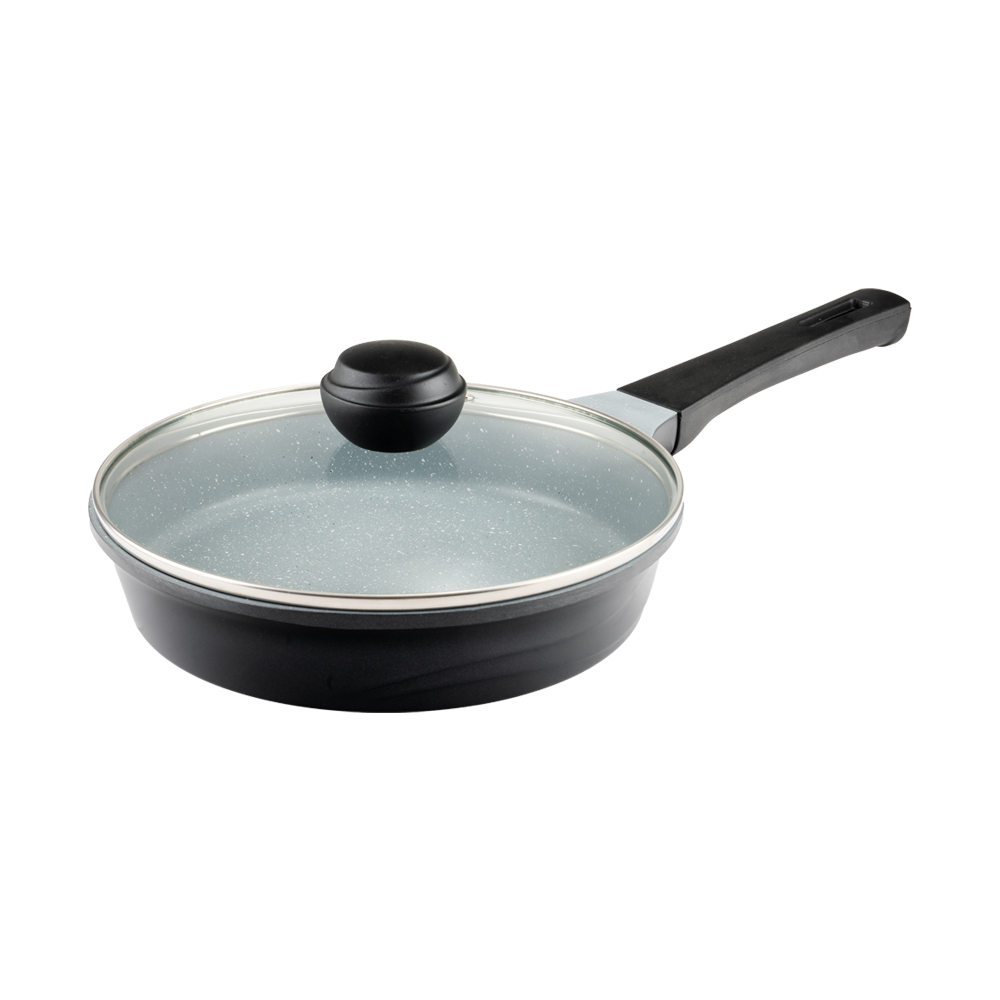 تابه تک طرح فورج سایز 24 روکشی از جنس گرانیت نچسب دارد که به آشپزی آسان و بیدردسر کمک میکند. درب این محصول از جنس پیرکس است.