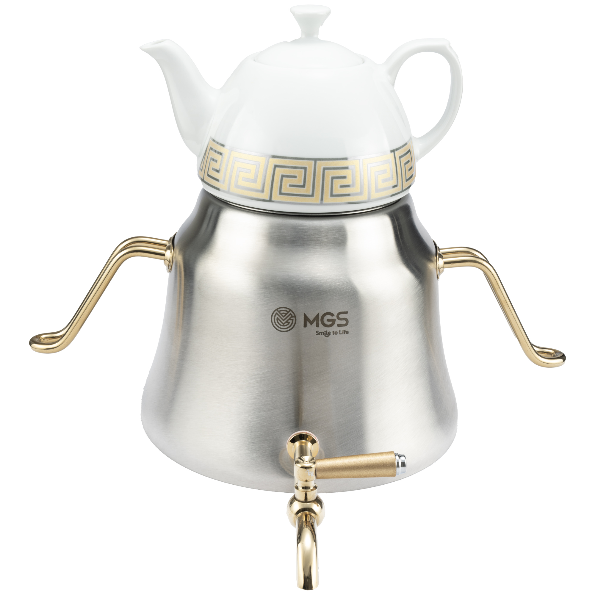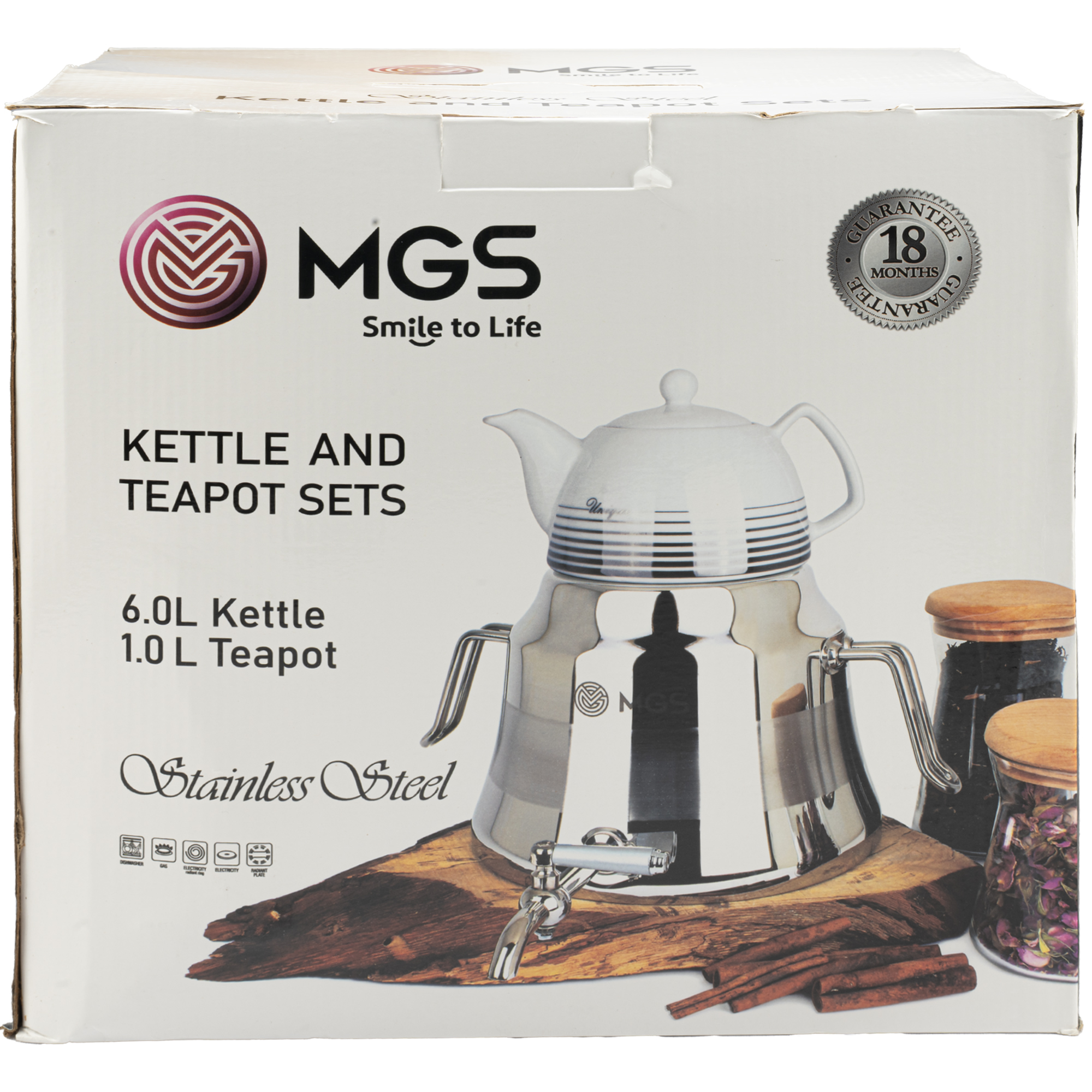 کتری و قوری استیل و چینی MGS کد K41016M یکی از کاربردیترین لوازم خانه و آشپزخانه هستند. این کتری بدنهای از جنس استیل ضد زنگ و دستهای از جنس استیل دارد. این کتری با بدنه مات، قابل استفاده روی انواع اجاق گاز و قابل شستشو با دست و ماشین ظرفشویی است.