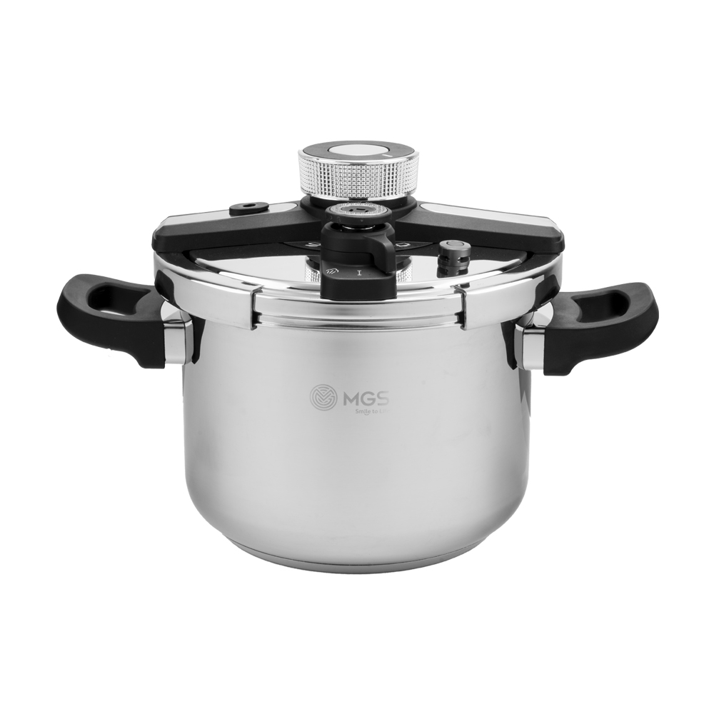 زودپز 6 لیتری برند ام جی اس با درب محکم و قابلیت تنظیم خروجی بخار، حرارت و فشار درون زودپر نسبت به نیاز شما قابل تنظیم است.