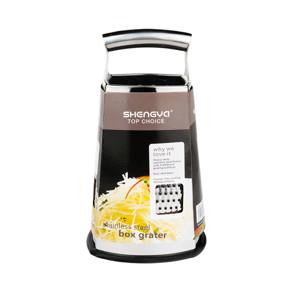 رنده چهارگوش شنگیا کد H0091 دارای چهار تیغه مختلف از جنس استیل ضد زنگ است. این ابزار آشپزی با طراحی ساده و مستحکم، قابل استفاده در زمان طولانی بدون آسیب است.