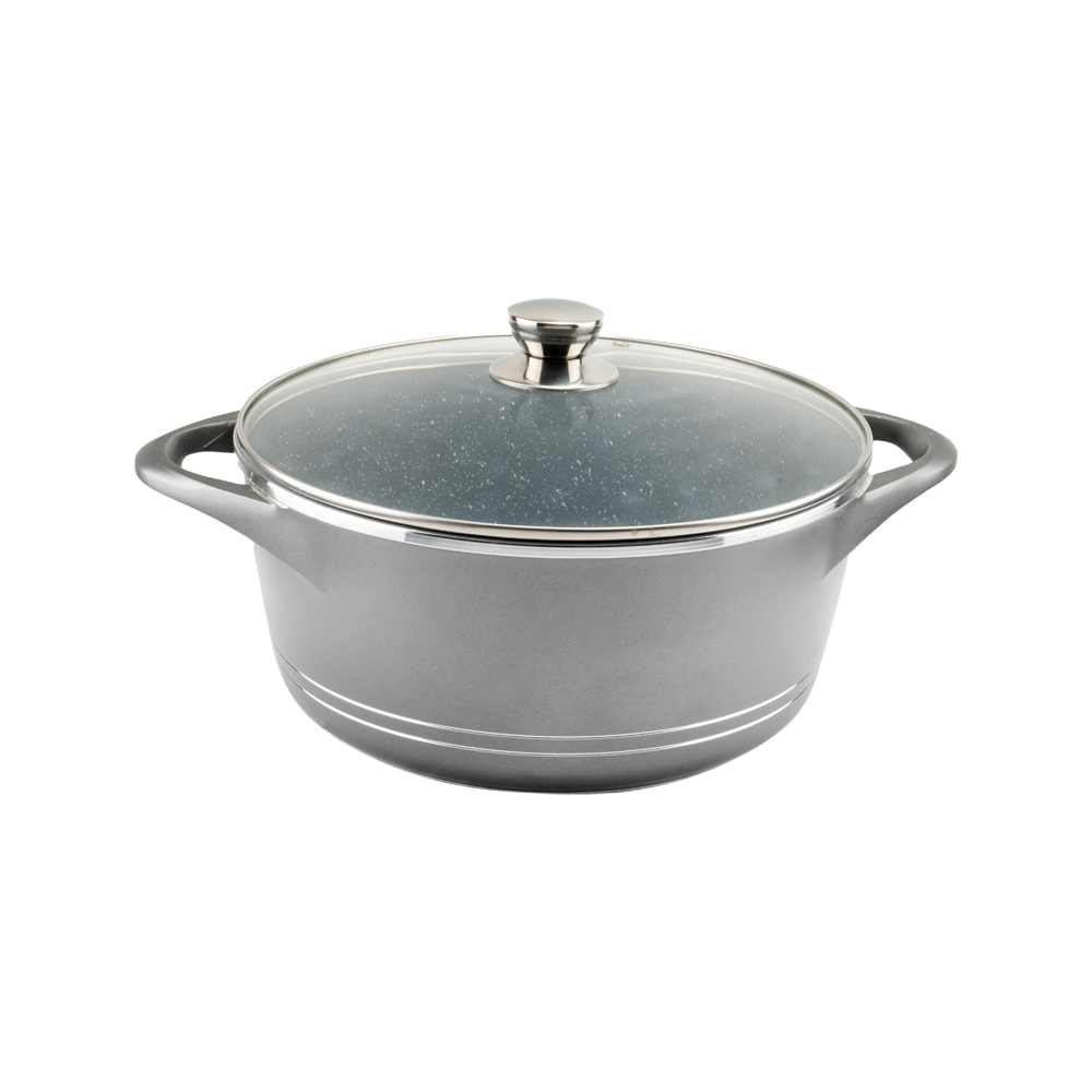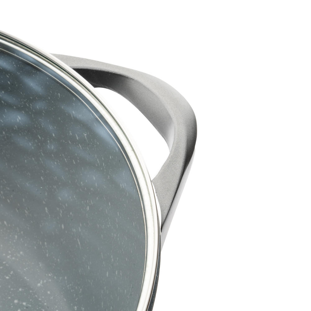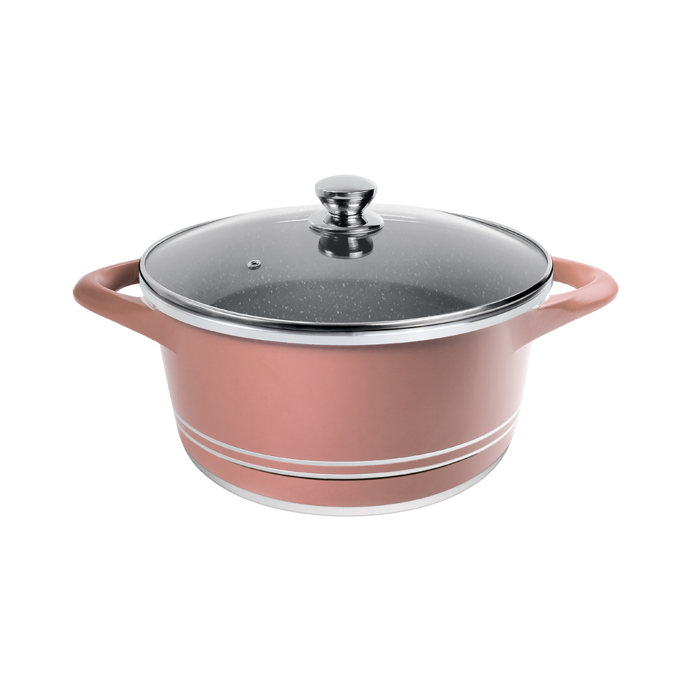 قابلمه تک طرح ایتالیا سایز 32 روکشی از جنس گرانیت نچسب دارد که به آشپزی آسان و بیدردسر کمک میکند. درب این محصول از جنس پیرکس است.