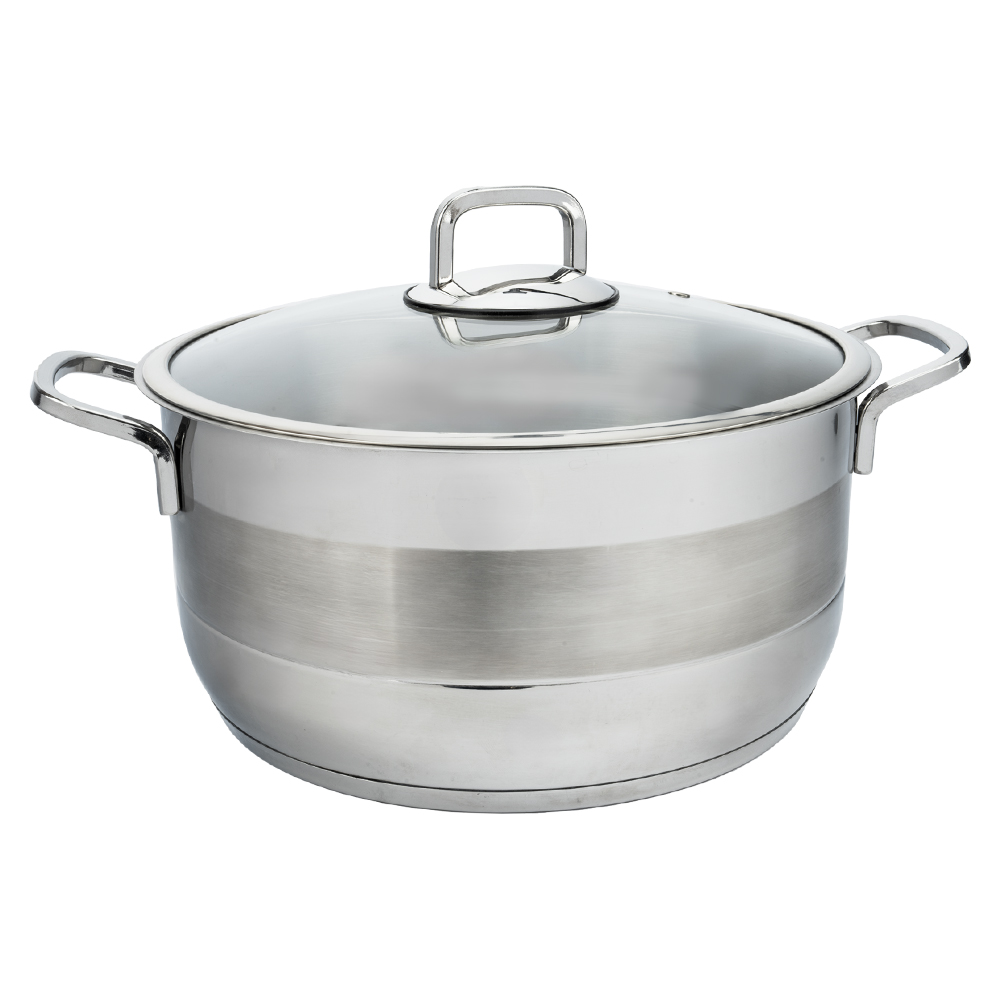 این سرویس قابلمه 10 پارچه استیل شامل چهار قابلمه و چهار درب پیرکس بعلاوه یک تابه دو دسته همراه درب است. جنس این ست، استیل ضد زنگ است. دستههای این سرویس قابلمه 10 پارچه استیل به بدنه متصل است.