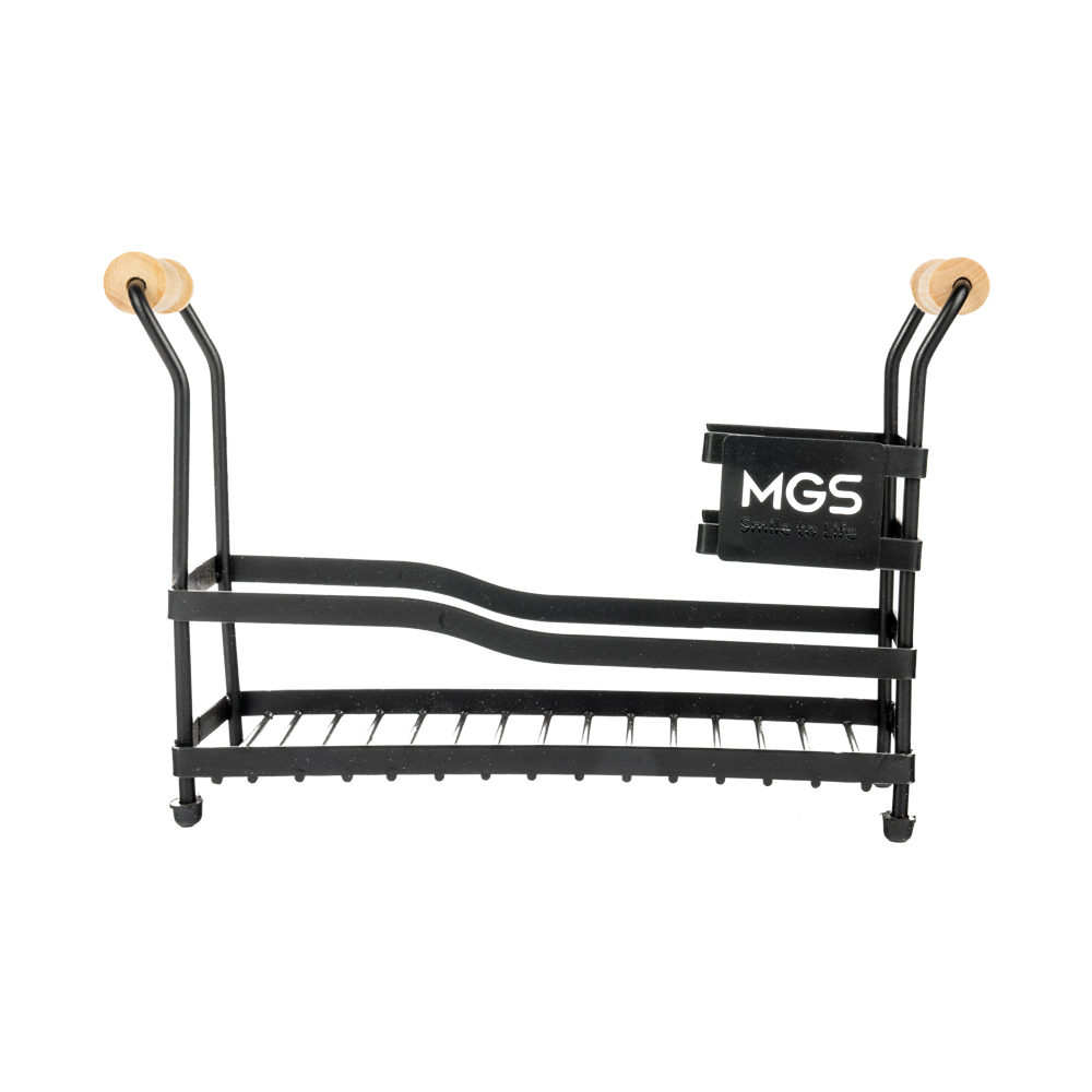 جا مایع شیشهای استند دار دوقلو کد LC2010 برند ام جی اس، از جنس فلز مقاوم به رطوبت و دستههای چوبی، مناسب استفاده کنار سینک ظرفشویی و رو شویی.