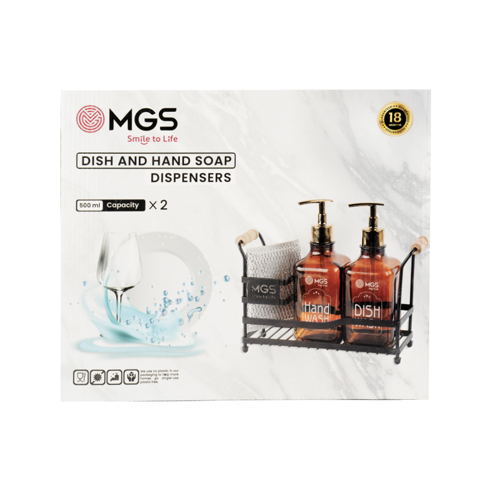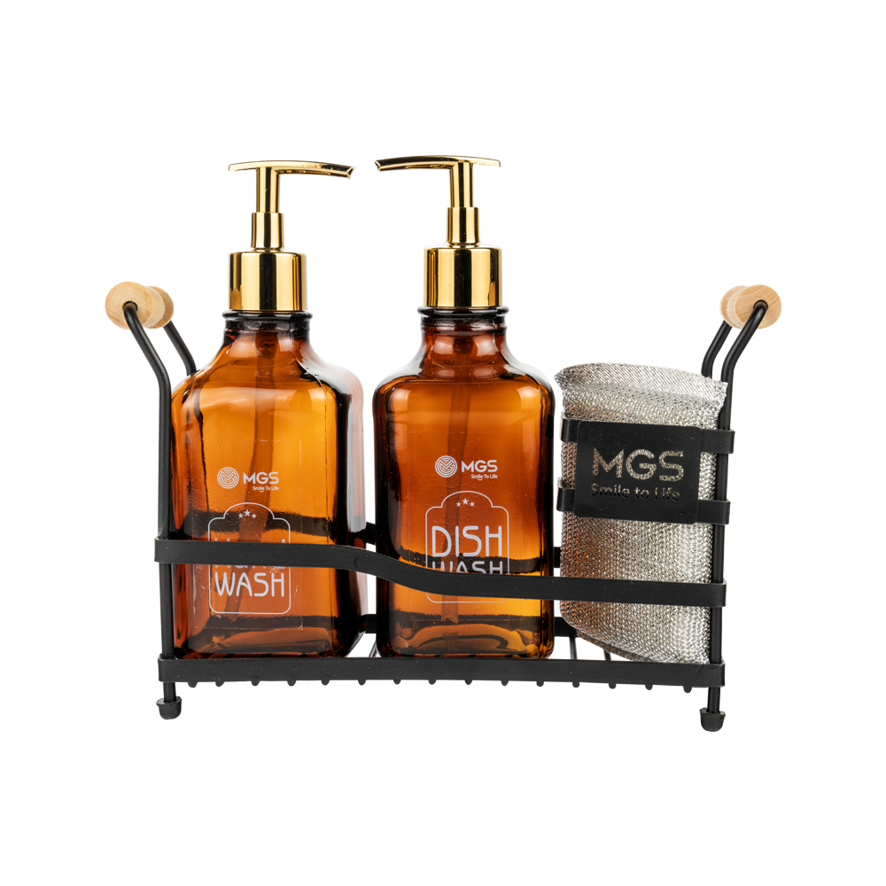 محصولی که مشاهده میکنید، پایه نگهدارنده اسکاچ و دو جای مایع ظرفشویی برند ام جی اس است. جنس بدنه از فلز مقاوم به آب و جنس جا مایع از شیشه است که از نظر بهداشتی بسیار رتبه بالایی دارد.