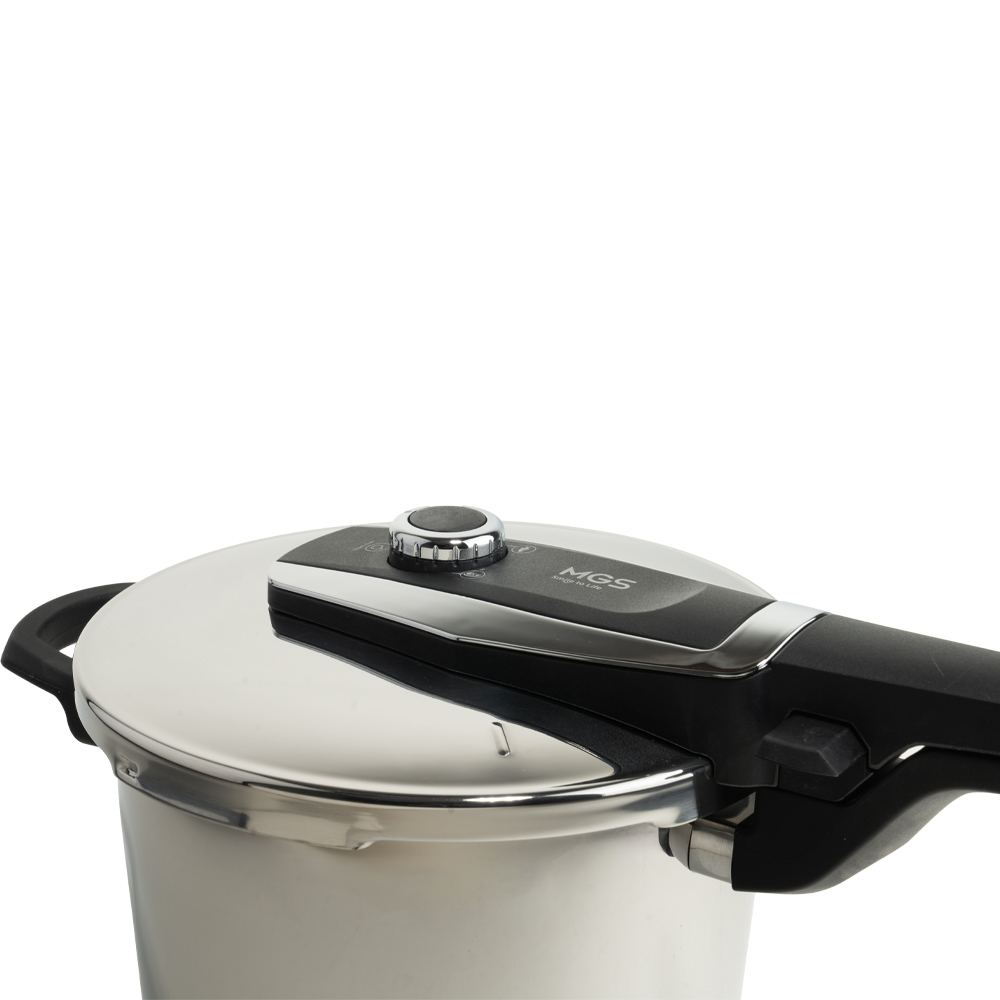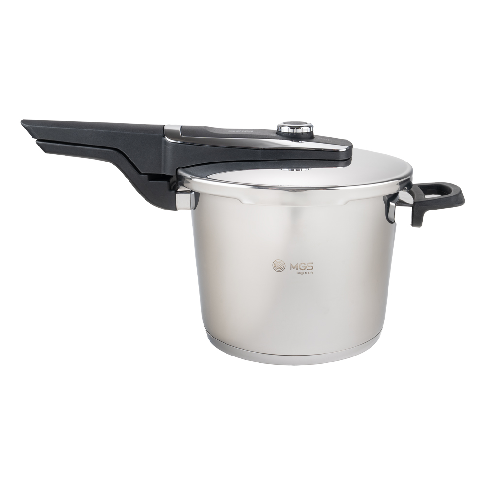 زودپز 6 لیتری تک دسته MGS کد PC801 یک ظرف عالی برای پخت سریع و کامل مواد غذایی دیر پز مانند گوشت و حبوبات است. شما میتوانید فشار داخل زودپز را با تنظیمات روی درب تغییر دهید تا بسته به مواد غذایی، فشار و دمای داخل زودپز تغییر کند.