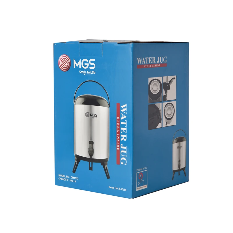 کلمن 10 لیتری ام جی اس با کد CM1013 یک کلمن پایه دار استیل است که می‌توان از آن در خانه یا طبیعت استفاده کرد.