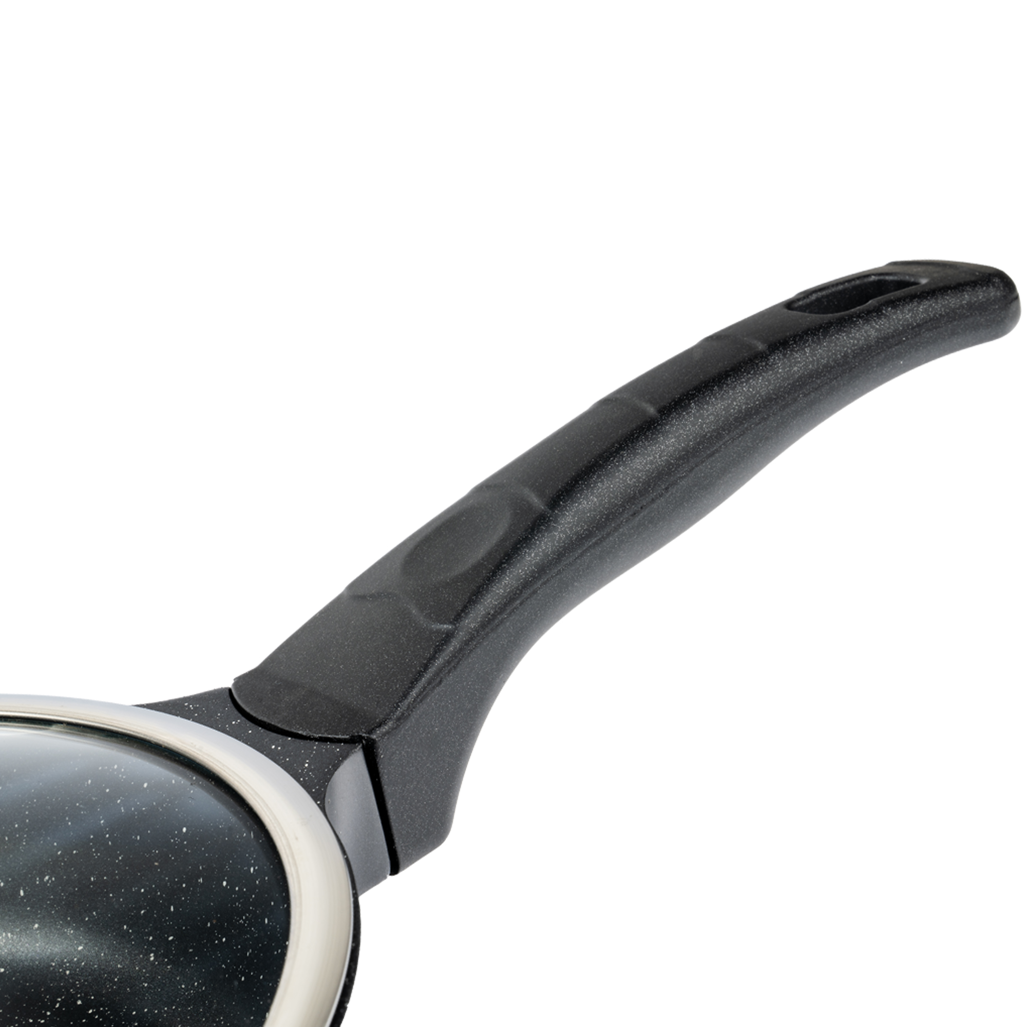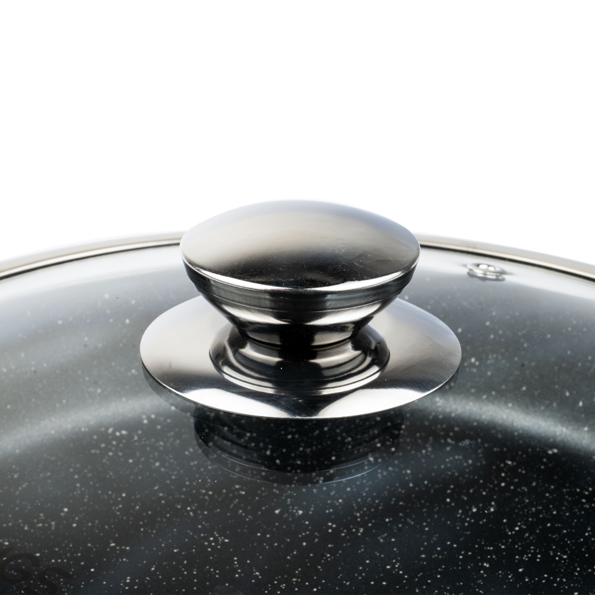 تابه تک طرح دایکست سایز 28 روکشی از جنس گرانیت نچسب دارد که به آشپزی آسان و بیدردسر کمک میکند. درب این محصول از جنس پیرکس است.