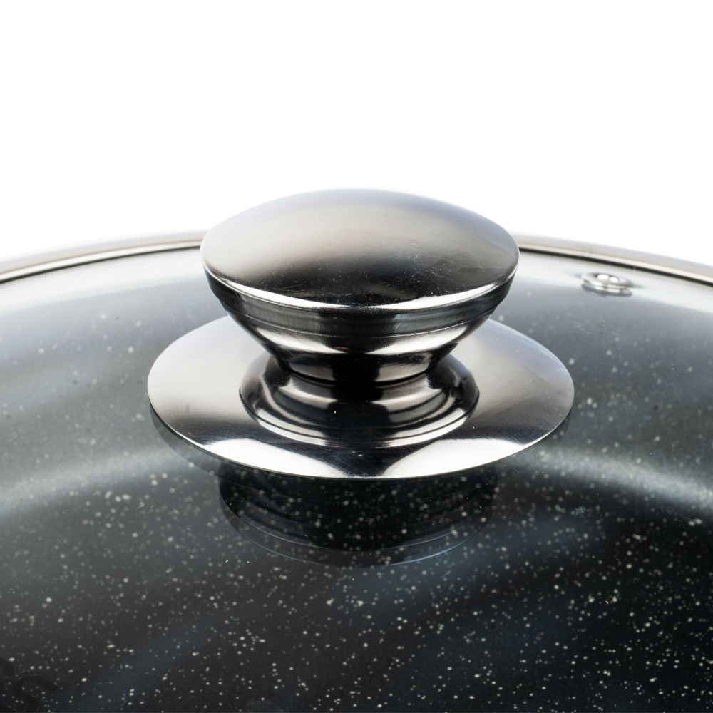 تابه تک طرح دایکست سایز 24 روکشی از جنس گرانیت نچسب دارد که به آشپزی آسان و بیدردسر کمک میکند. درب این محصول از جنس پیرکس است.