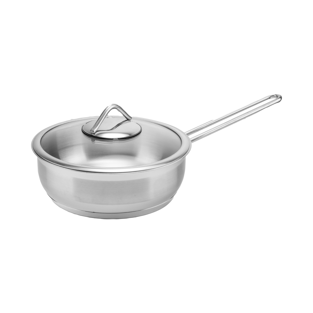 تابه تک سایز 20 بدنهای از جنس استیل نچسب دارد که به آشپزی آسان و بیدردسر کمک میکند. درب این محصول از جنس پیرکس است.