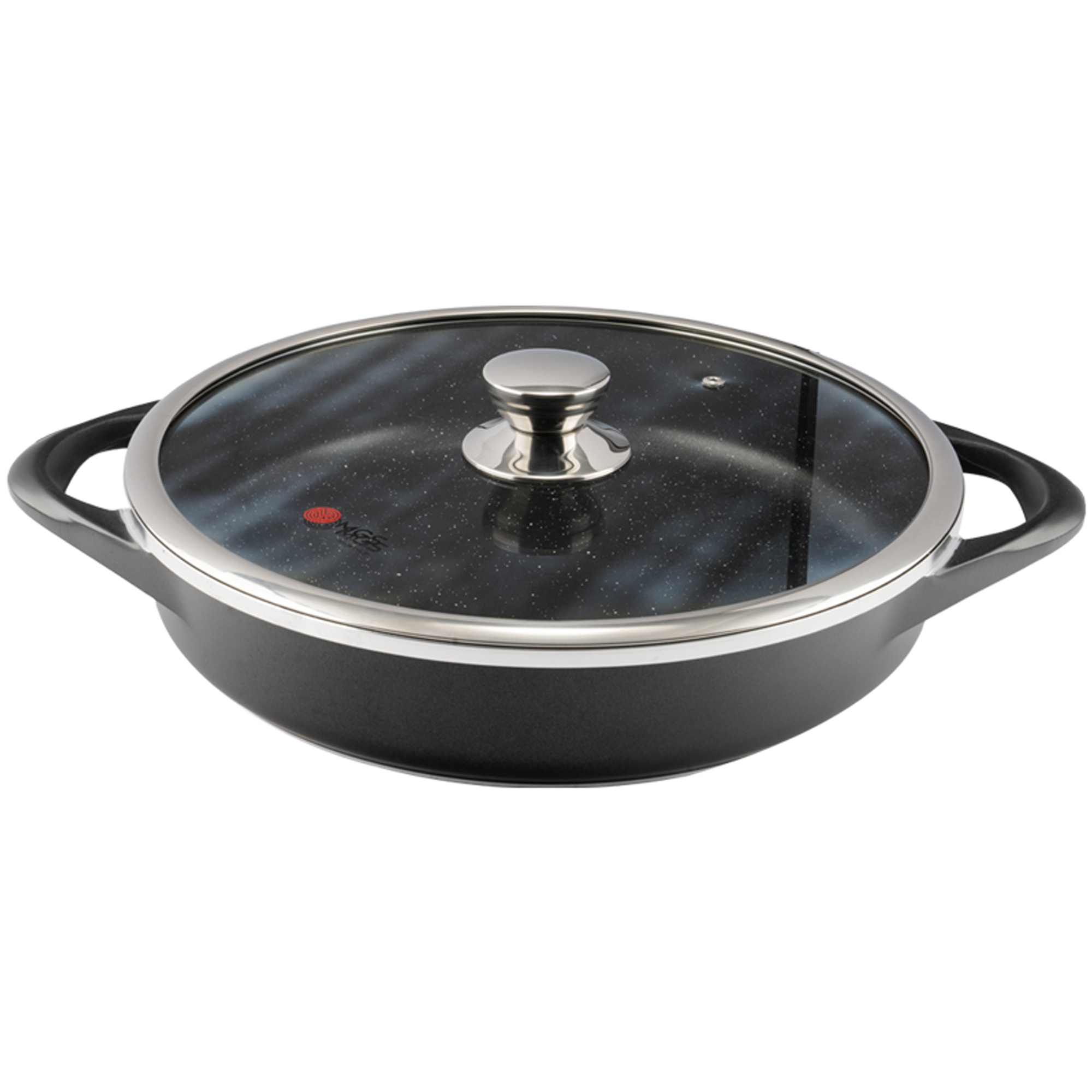 تابه تک طرح دایکست سایز 28 روکشی از جنس گرانیت نچسب دارد که به آشپزی آسان و بیدردسر کمک میکند. درب این محصول تخت و از جنس پیرکس است.