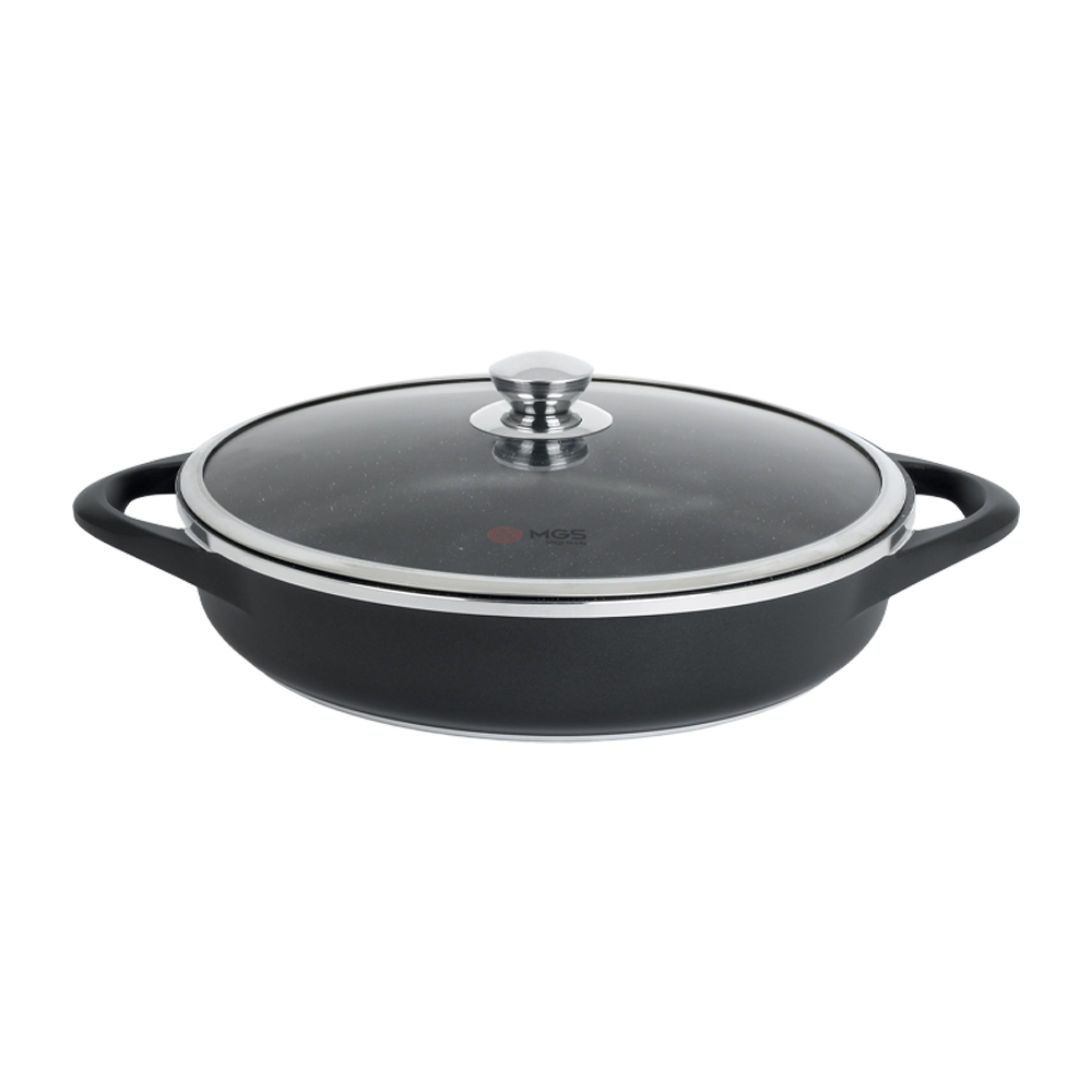 تابه تک طرح دایکست سایز 32 روکشی از جنس گرانیت نچسب دارد که به آشپزی آسان و بیدردسر کمک میکند. درب این محصول از جنس پیرکس است.