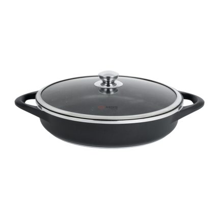 تابه تک طرح دایکست سایز 32 روکشی از جنس گرانیت نچسب دارد که به آشپزی آسان و بیدردسر کمک میکند. درب این محصول تخت و از جنس پیرکس است.