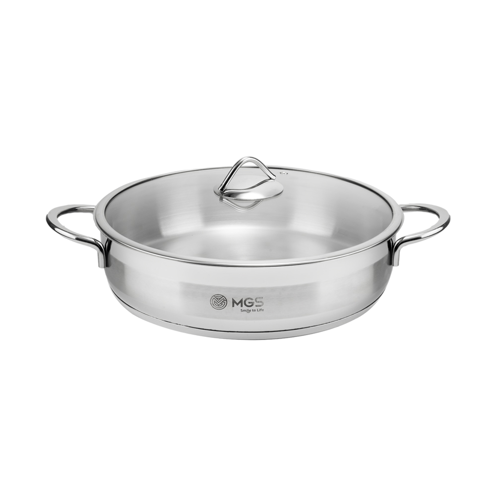 تابه تک سایز 32 بدنهای از جنس استیل نچسب دارد که به آشپزی آسان و بیدردسر کمک میکند. درب این محصول از جنس پیرکس است.