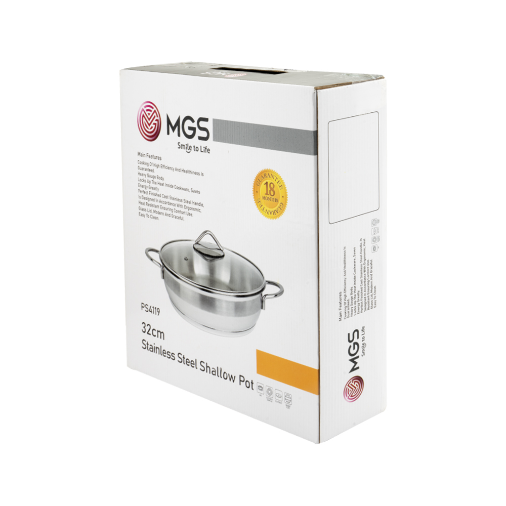 تابه استیل دو دسته سایز 32 کد 4119 از جنس استیل است، دستههای این تابه از جنس بدنه میباشد. این تابه استیل بزرگ با قطر 32 سانتیمتر مناسب طبخ انواع غذاست.