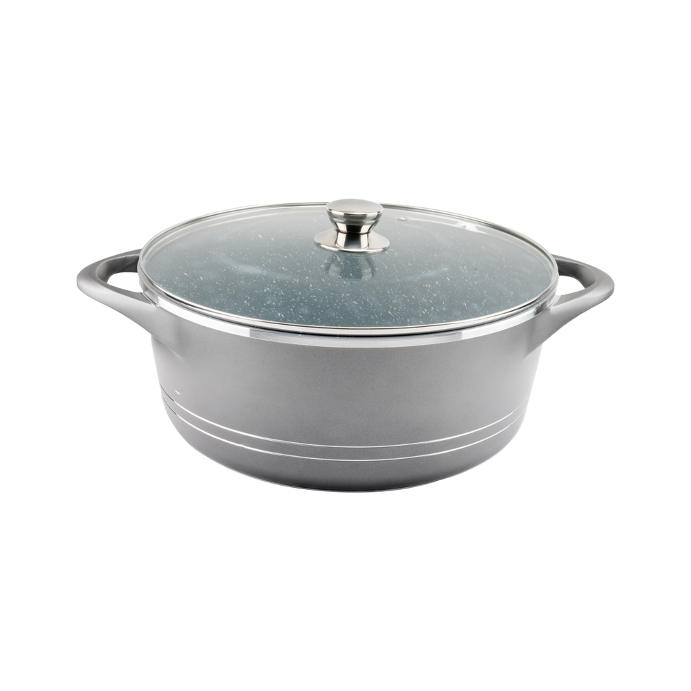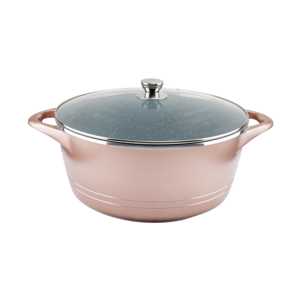 قابلمه تک طرح ایتالیا سایز 36 روکشی از جنس گرانیت نچسب دارد که به آشپزی آسان و بیدردسر کمک میکند. درب این محصول از جنس پیرکس است.