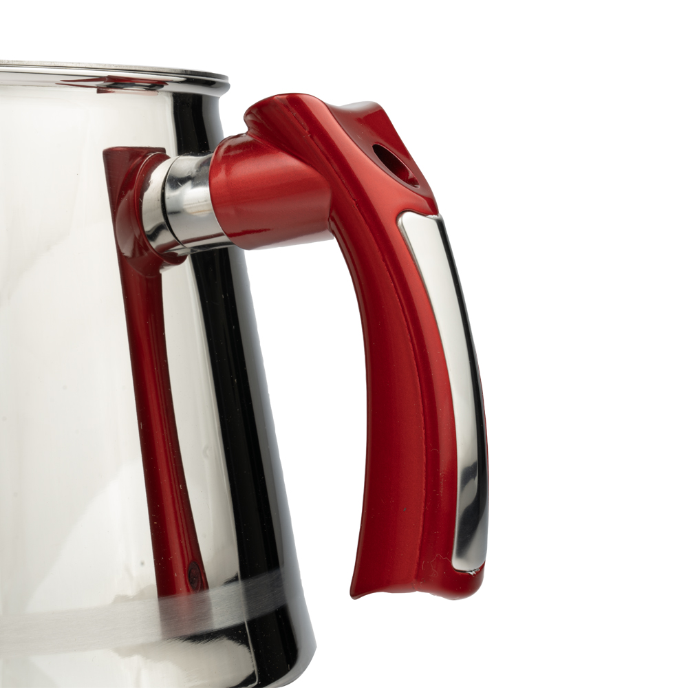 کتری استیل ام جی اس با 2.5 لیتر گنجایش، بدنه استیل و دسته پلاستیک مناسب استفاده برای خانواده‌های 2 تا 6 نفره است.