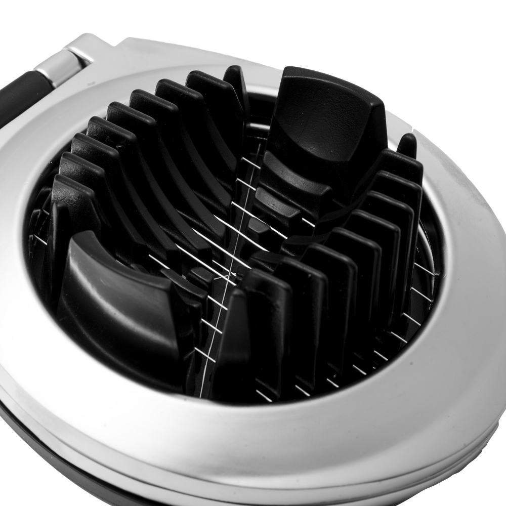 این تخم مرغ خرد کن، یک کفی شیاردار گود دارد که تخم مرغ در آن جای می‌گیرد و یک تیغه که در یک حرکت تخم مرغ را به چند قسمت مساوی تقسیم می‌کند.