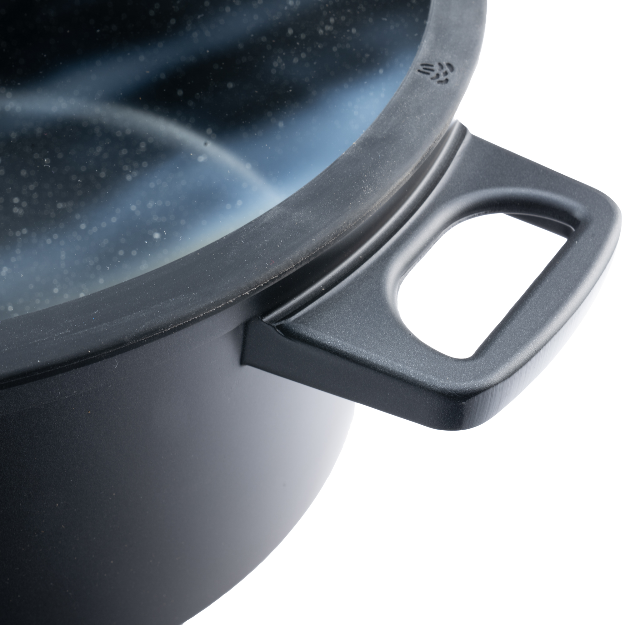 قابلمه تک طرح جرمنی سایز 32 روکشی از جنس گرانیت نچسب دارد که به آشپزی آسان و بیدردسر کمک میکند. درب این محصول از جنس پیرکس و نوار دور آن از جنس سیلیکون است.