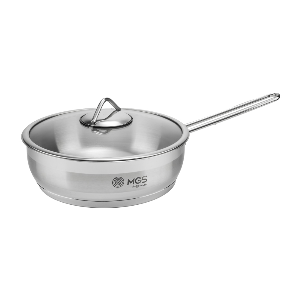 تابه تک سایز 24 بدنهای از جنس استیل نچسب دارد که به آشپزی آسان و بیدردسر کمک میکند. درب این محصول از جنس پیرکس است.