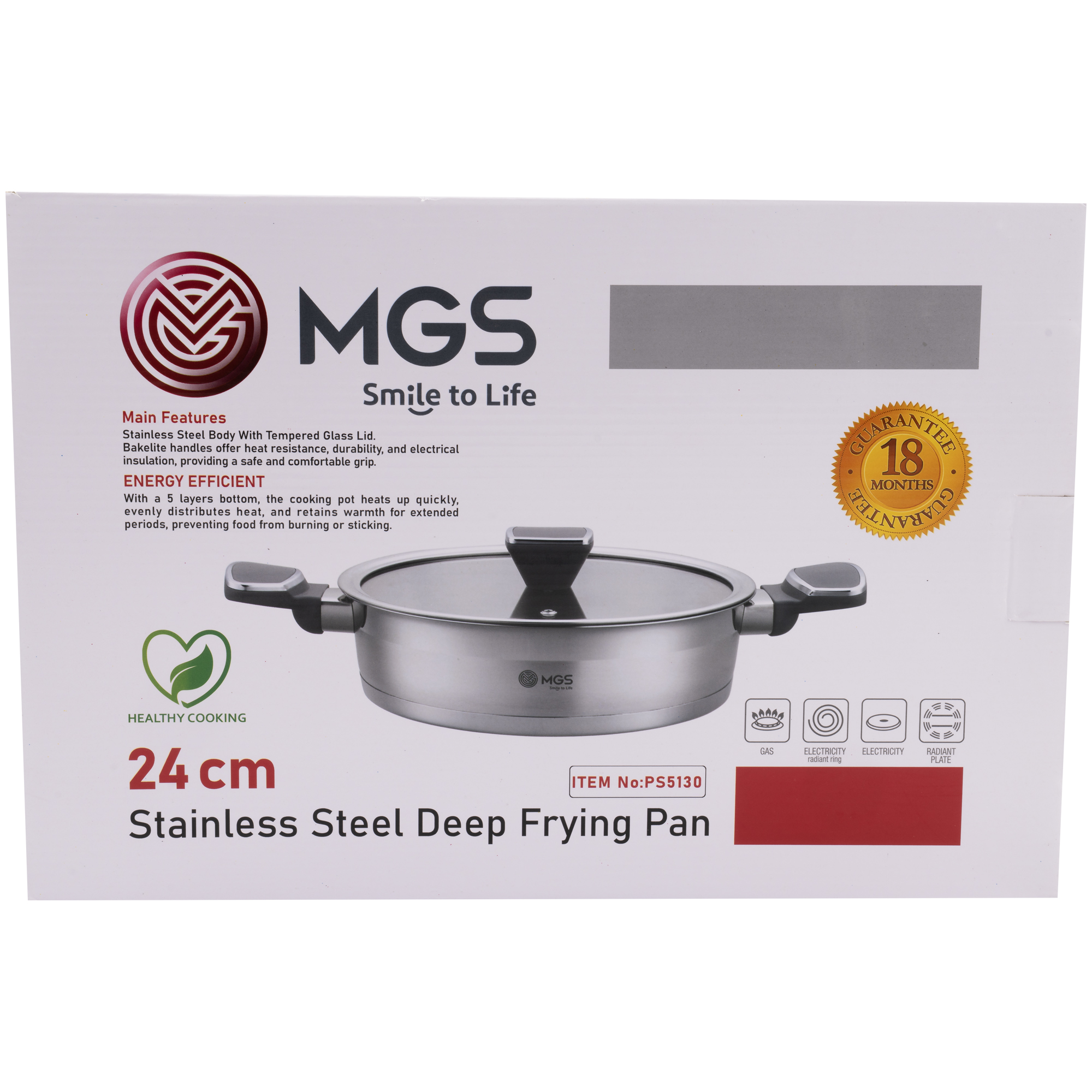 تابه تک سایز 24 بدنهای از جنس استیل نچسب دارد که به آشپزی آسان و بیدردسر کمک میکند. درب این محصول از جنس پیرکس است.