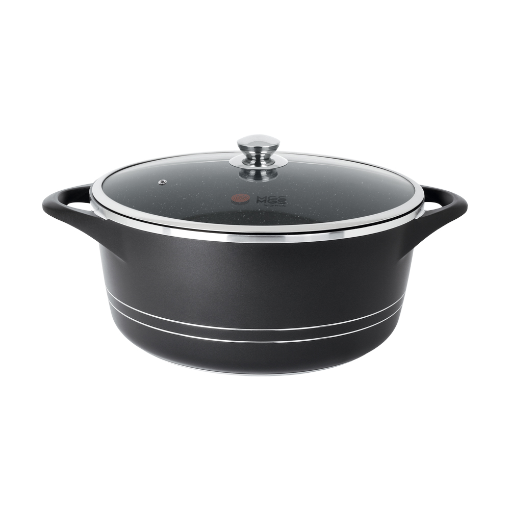قابلمه تک طرح ایتالیا سایز 40 روکشی از جنس گرانیت نچسب دارد که به آشپزی آسان و بیدردسر کمک میکند. درب این محصول از جنس پیرکس است.