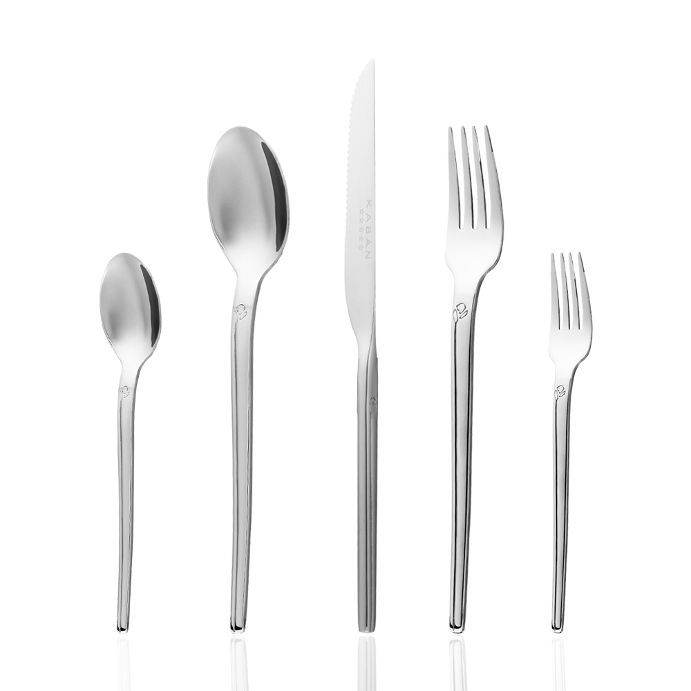 ست قاشق و چنگال استیل کابان مناسب پذیرایی از 30 نفر و قابل استفاده در مهمانی‌های بزرگ و دورهمی‌های کوچک است. این ست شامل قاشق، چنگال، چنگال میوه، قاشق چای خوری، مرباخوری و شربت خوری، خورشت خوری، انبر سالاد، کفگیر، کارد و ملاقه می‌شود.