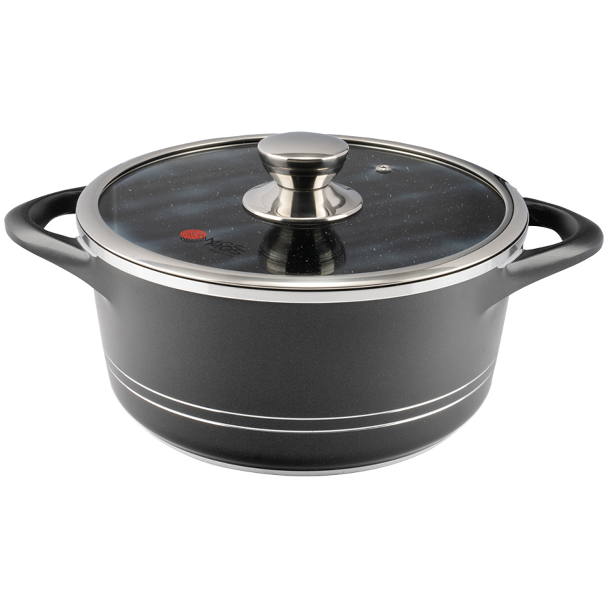 قابلمه تک طرح ایتالیا سایز 24 روکشی از جنس گرانیت نچسب دارد که به آشپزی آسان و بیدردسر کمک میکند. درب این محصول تخت و از جنس پیرکس است.