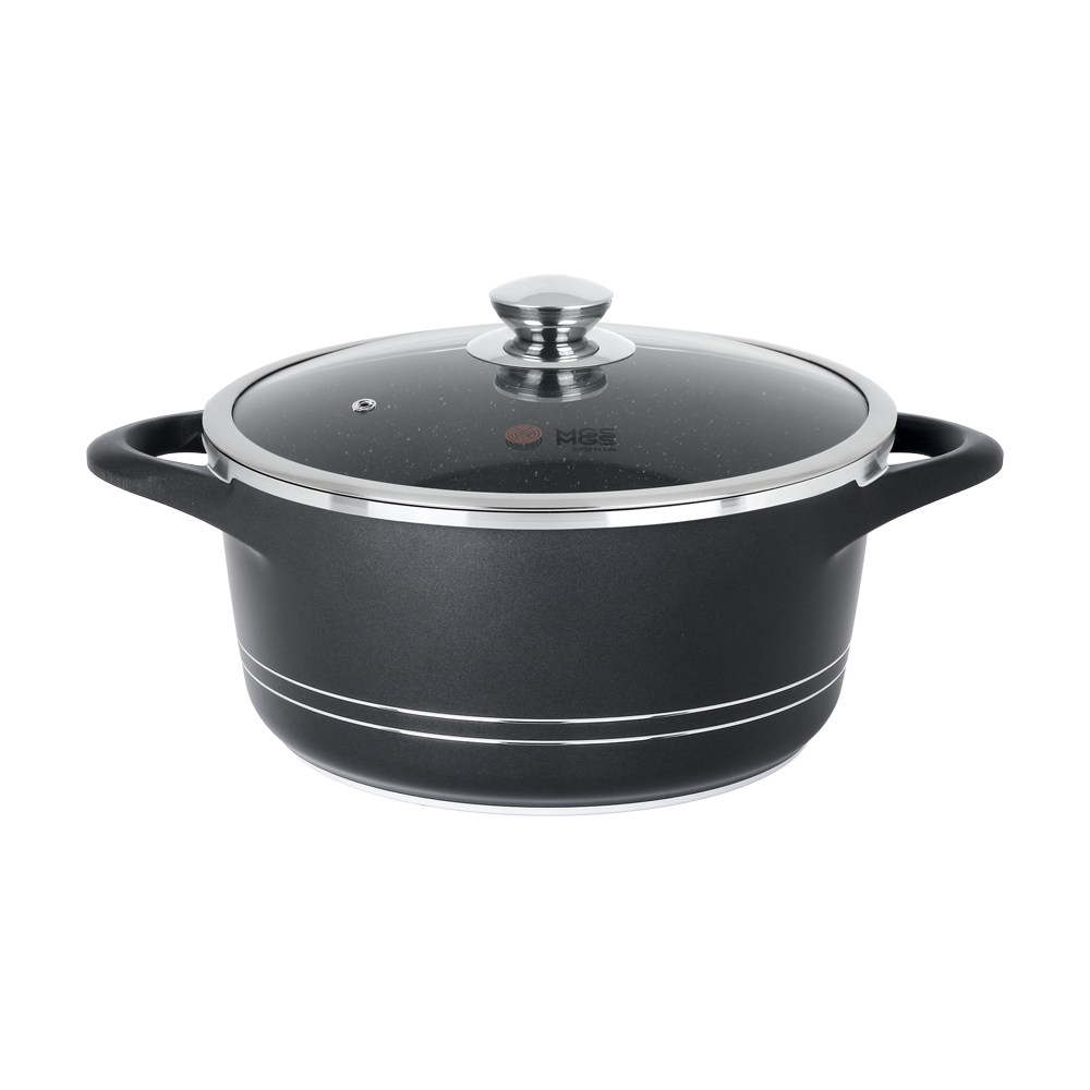 قابلمه تک طرح ایتالیا سایز 24 روکشی از جنس گرانیت نچسب دارد که به آشپزی آسان و بیدردسر کمک میکند. درب این محصول از جنس پیرکس است.