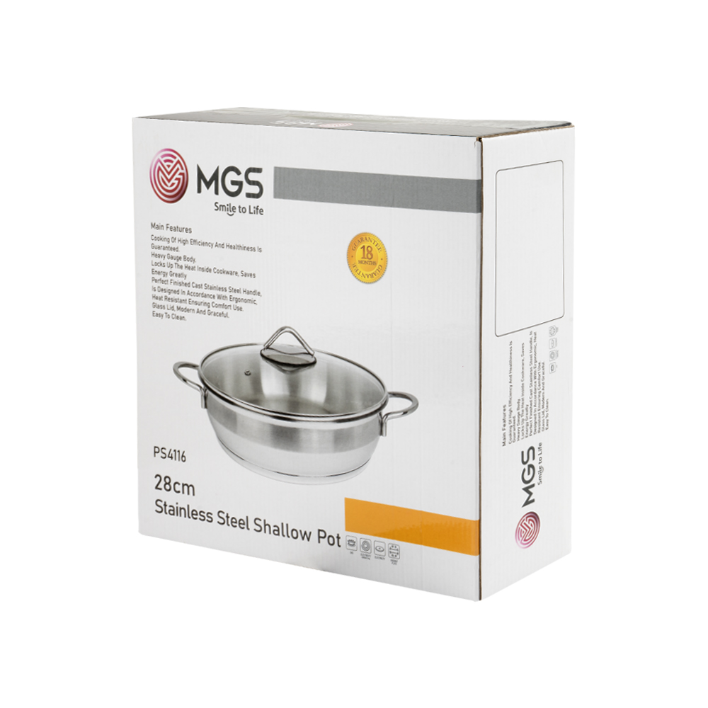 تابه استیل دو دسته سایز 28 کد 4116 از جنس استیل است، دستههای این تابه از جنس بدنه میباشد. این تابه استیل بزرگ با قطر 28 سانتیمتر مناسب طبخ انواع غذاست.