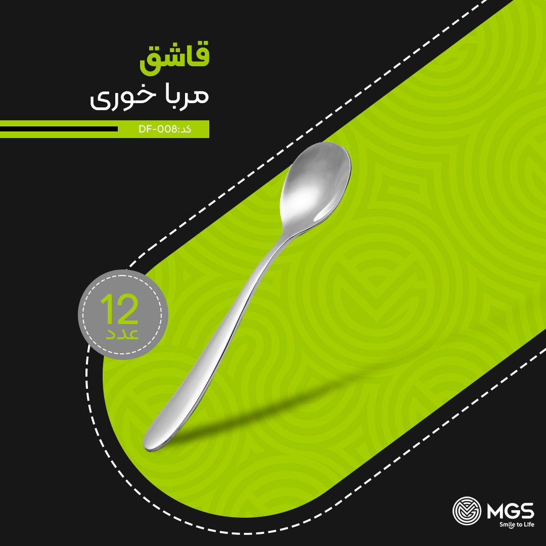 قاشق مربا خوری استیل کد DF008 شامل 12عدد قاشق مربا متوسط است. این ست قابل استفاده به عنوان قاشق چای خوری و قاشق شربت خوری نیز می‌باشد. شما می‌توانید یک ست 12 عددی یا تعداد بیشتر مناسب نیاز خود، از این محصول سفارش دهید.