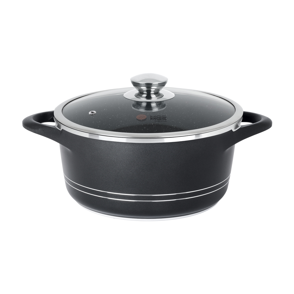 قابلمه تک طرح ایتالیا سایز 20 روکشی از جنس گرانیت نچسب دارد که به آشپزی آسان و بیدردسر کمک میکند. درب این محصول از جنس پیرکس است.