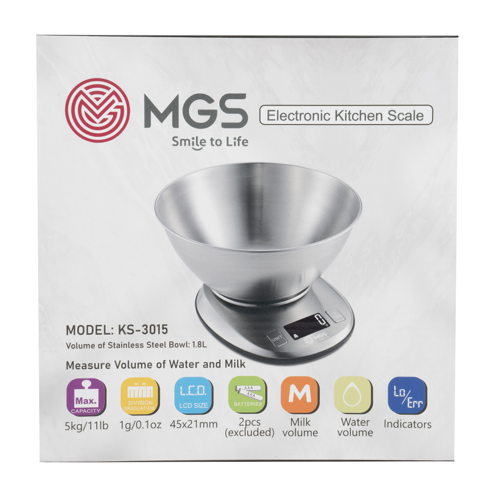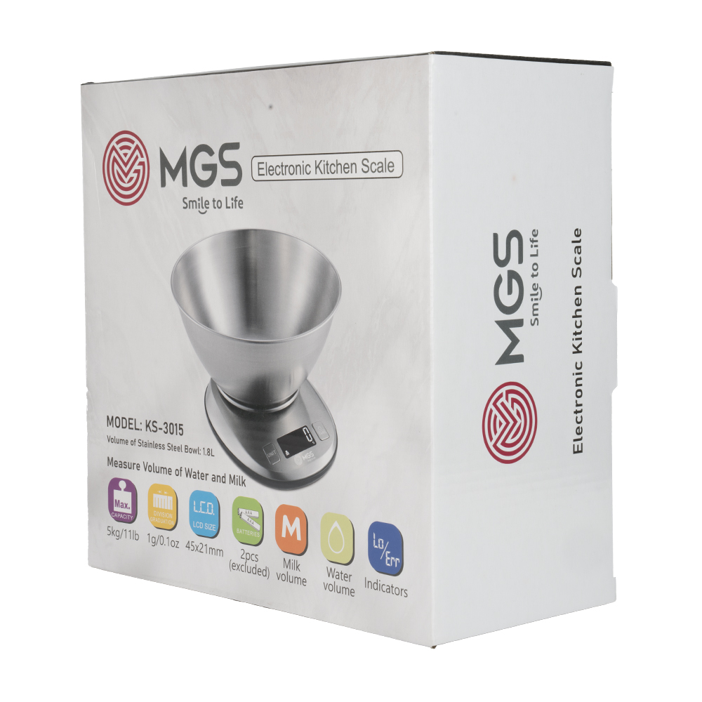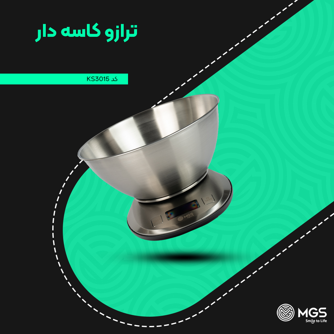 ترازو کاسه دار MGS کد KS3015 مناسب برای استفاده در آشپزخانه است. شما می‌توانید از این ترازو برای اندازه گیری مقدار مواد غذایی استفاده کنید. این ترازو به خاطر شکل ظاهری خود به نام ترازو کاسه دار شناخته می‌شود.
