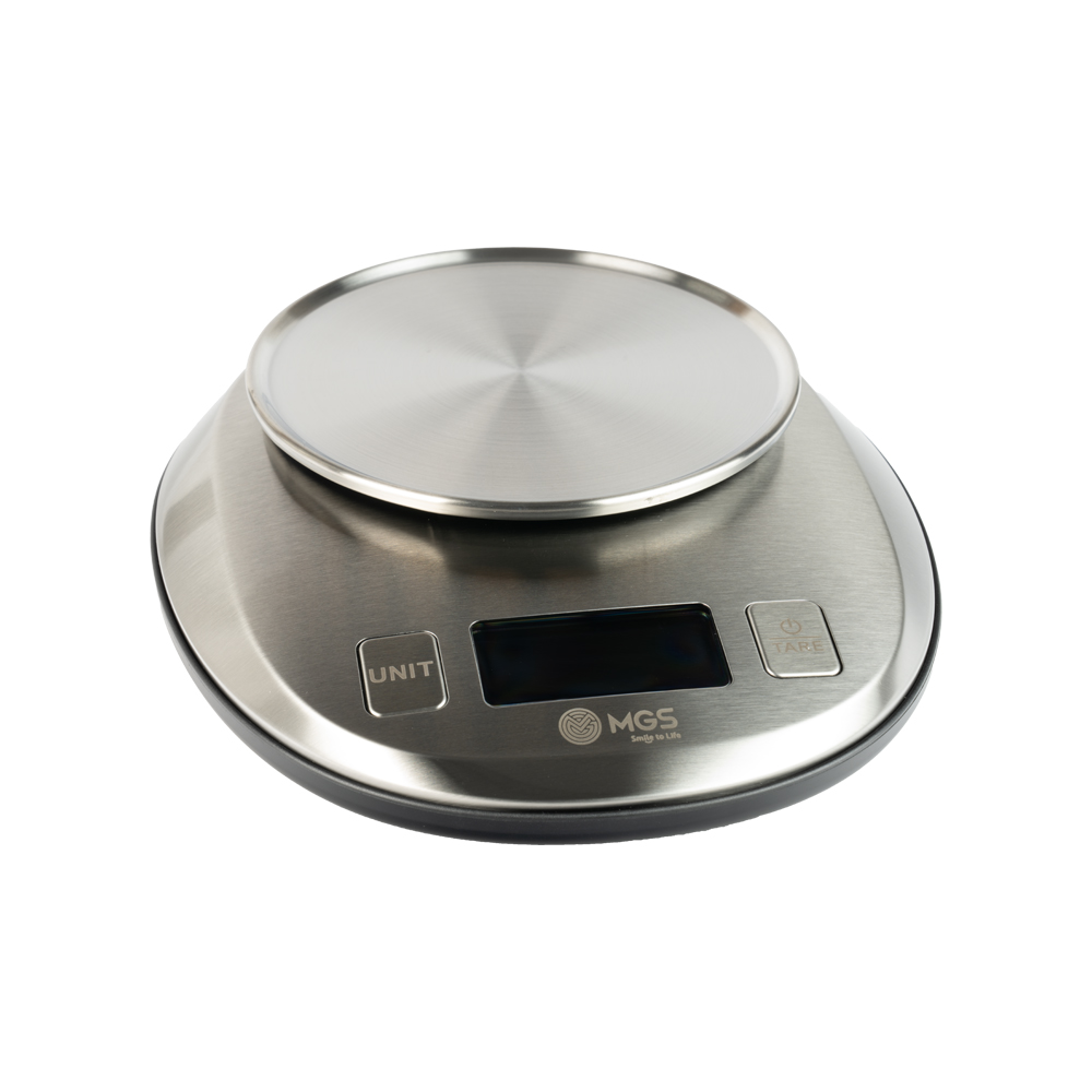 ترازو ام جی اس با کاسه و بدنه‌ای از جنس استیل قابل استفاده برای اندازه گیری تمامی مواد غذایی خشک یا تر در آشپزخانه است.