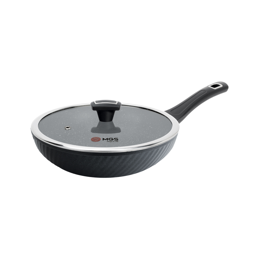 تابه تک طرح فورج سایز 24 روکشی از جنس گرانیت نچسب دارد که به آشپزی آسان و بیدردسر کمک میکند. درب این محصول از جنس پیرکس است.