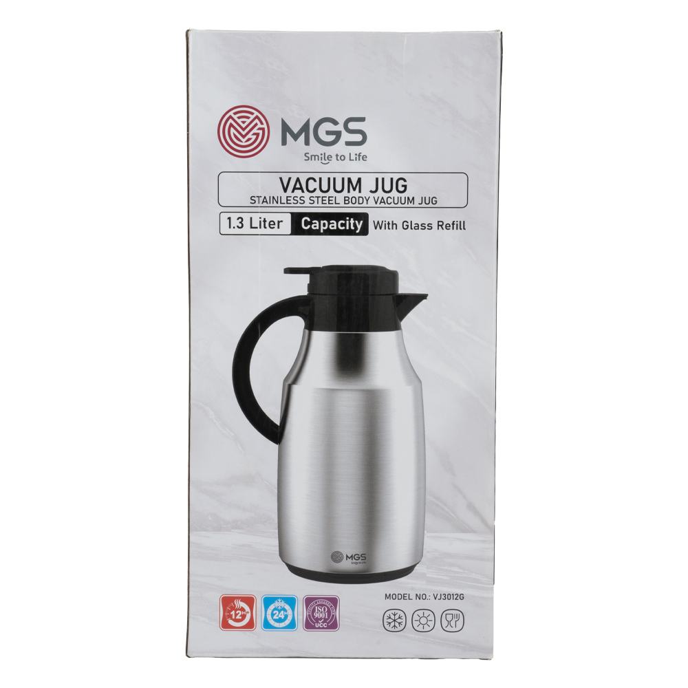 فلاسک 1.3 لیتر استیل MGS کد VJ3012G یک فلاسک دسته دار با بدنه استیل است. این ابزار کاربردی 1.3 لیتر گنجایش دارد و به مدت طولانی مایعات را در دمای ثابت نگهمیدارد. شما میتوانید بدون نگرانی از نشتی از این فلاسک در سفر یا پیک نیک استفاده کنید.