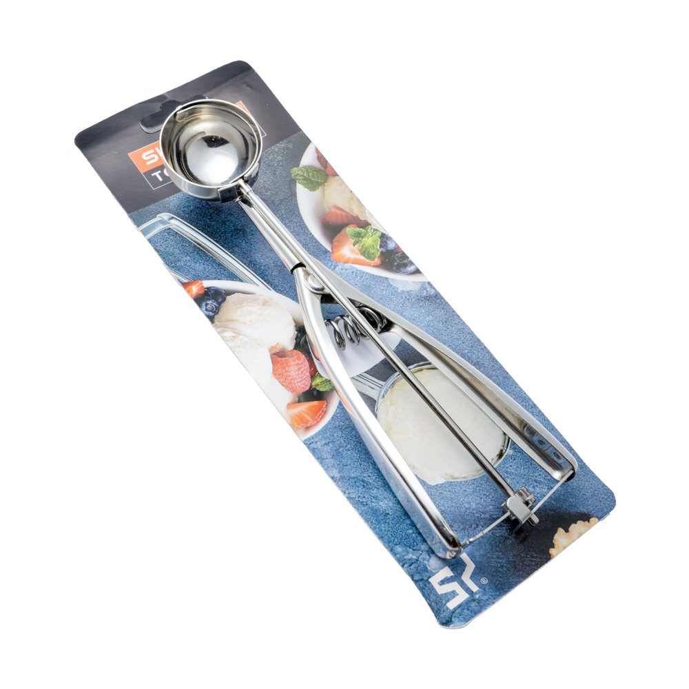 اسکوپ بستنی MGS کد B3249 از جنس استیل ضد زنگ و قابل استفاده در خانه، کافه و رستوران. این اسکوپ را می‌توان برای سرو بستنی، دسر، ژله و دیگر خوراکی‌ها استفاده کرد.
