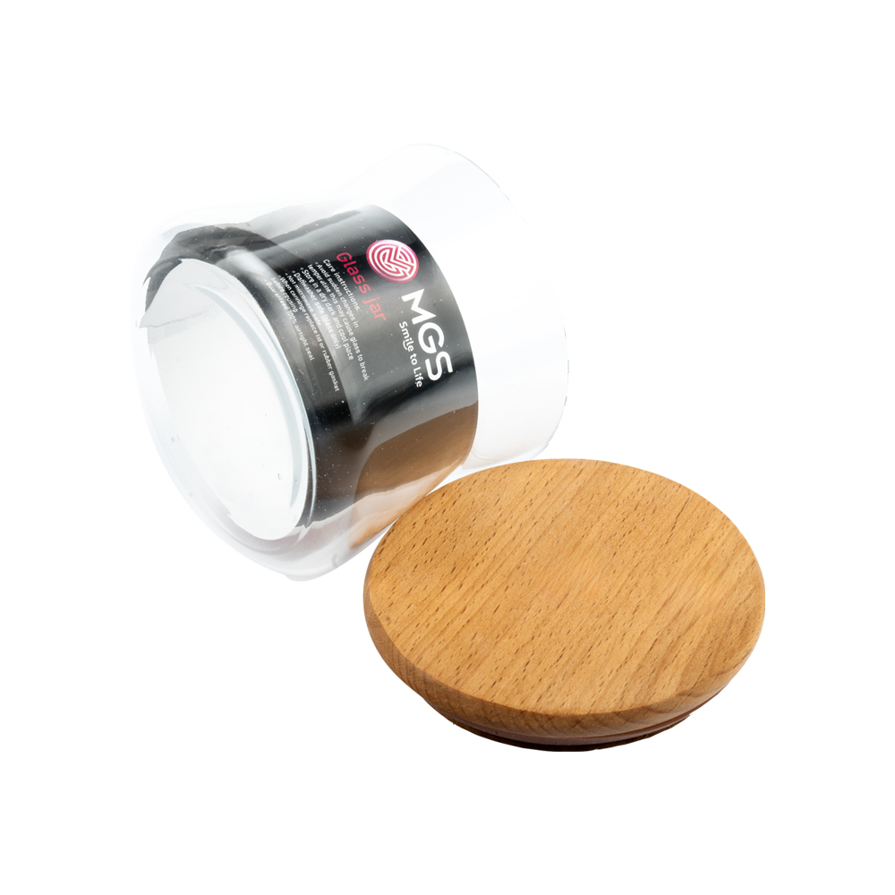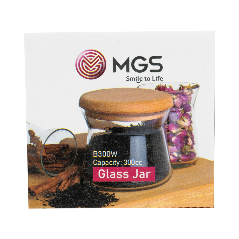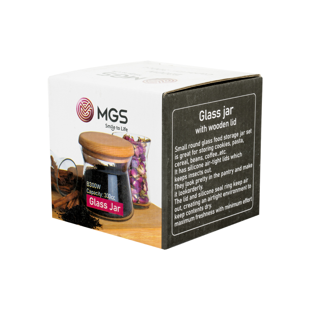 بانکه شیشه‌ای برند ام جی اس با درب چوبی محکم، رطوبت و آلودگی را از مواد غذایی دور نگه‌می‌دارد. گنجایش این بانکه 300ml است.