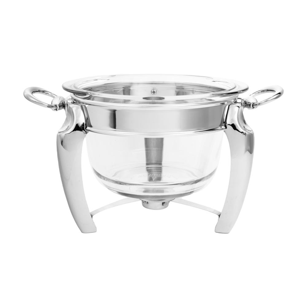 سوفله سوپ خوری ام جی اس با پایه استیل کروم و یک ملاقه سرو کروم، مناسب برای استفاده به تنهایی یا در کنار دیگر سوفله‌هاست.