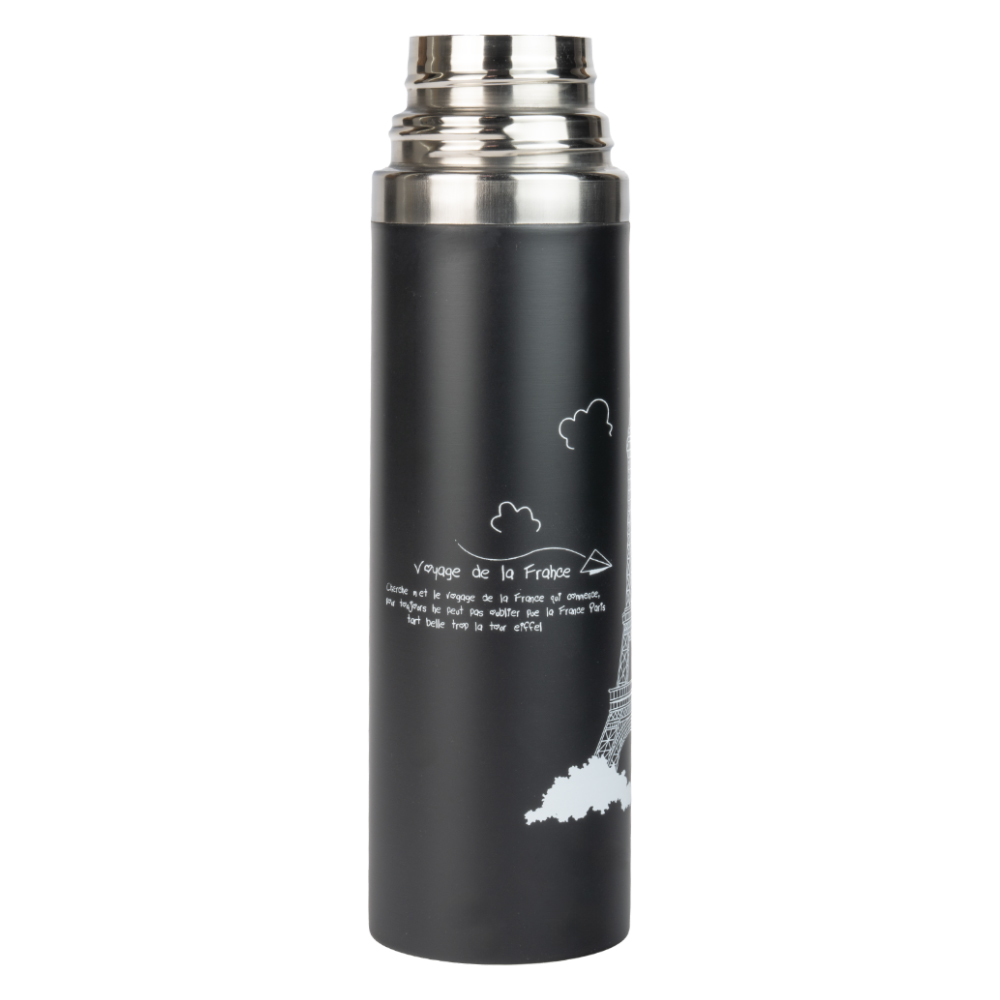 فلاسک1 لیتری جداره بیرونی از جنس استیل دارد. بین دو جداره گازی وجود دارد که باعث حفظ دما در مدت طولانی می‌شود. کارکرد درب این فلاسک پیچی است.